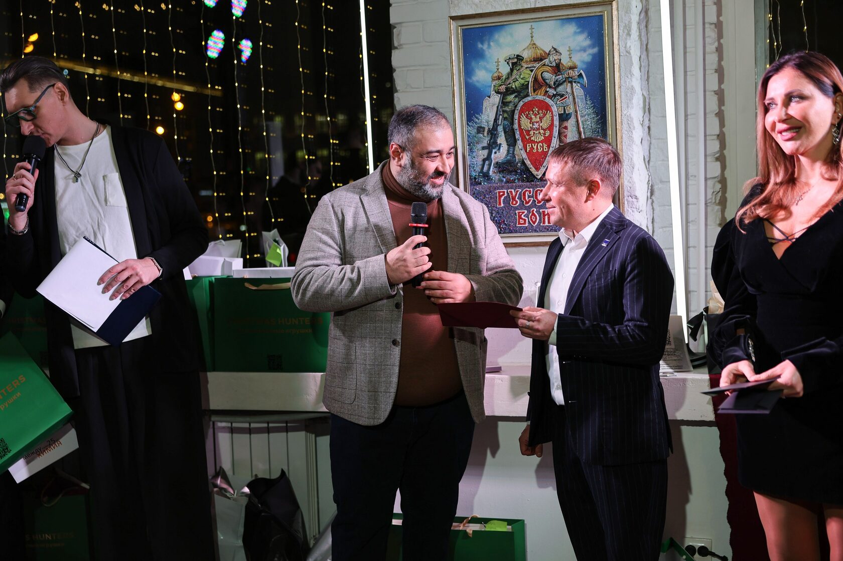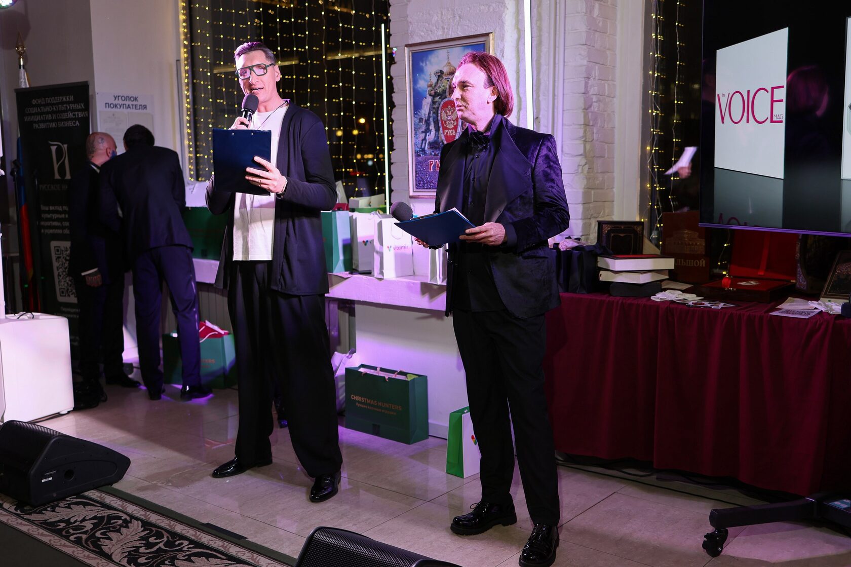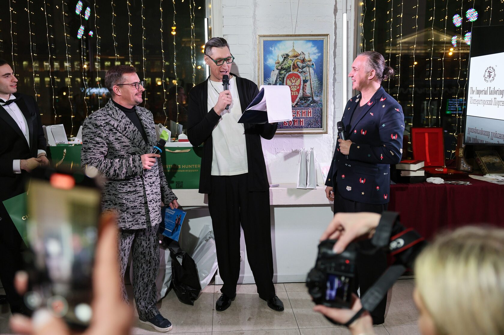 Ведущими стали обаятельные и харизматичные Евгений Дмитриев и Игорь Станкевич - дуэт, задавший тон лёгкого светского общения.